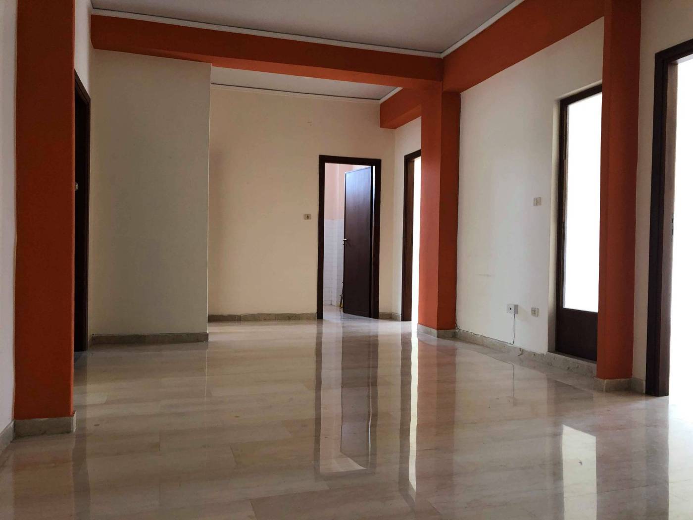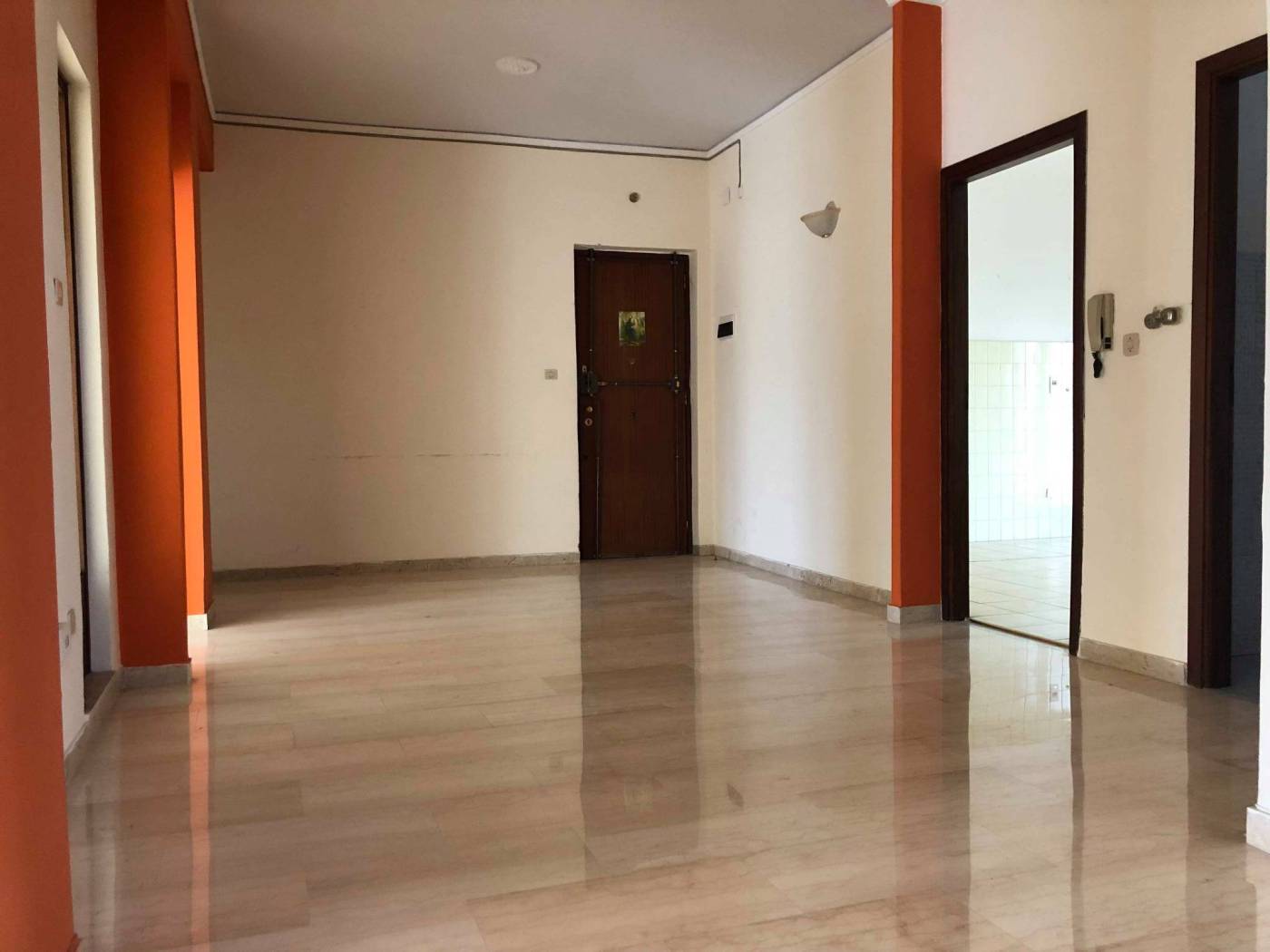 L'appartamento di 120 mq circa,lo troviamo così diviso: grande hall di ingresso, una cucina, un soggiorno, una camera da letto,una cameretta, un bagno, un doppio servizio.